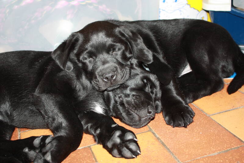Heute haben Anna und Paul schon fünf Wochen bekommen. Laufen können sie schon sehr gut auch wenn es manchmal noch an etwas Balance fehlt. Auch mit den anderen Hunden haben sie sich prima angefreundet und auch die Katzen sind begeistert von den Puppies. Mama Bounty ist jetzt nicht nur eine Milchbar sondern auch eine prima Spielgefährtin :)